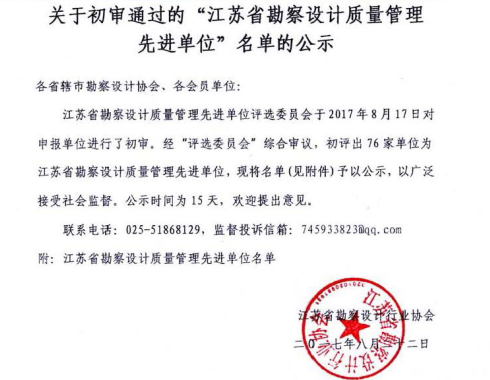 江蘇省工程勘察設(shè)計(jì)行業(yè)誠信單位誠信單位”的企業(yè)